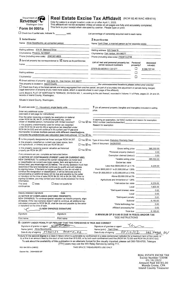 | Mailing Address: | 5255 SALAL ST OAK HARBOR, WA 98277 | % Ownership: | 100.0000000000% |
