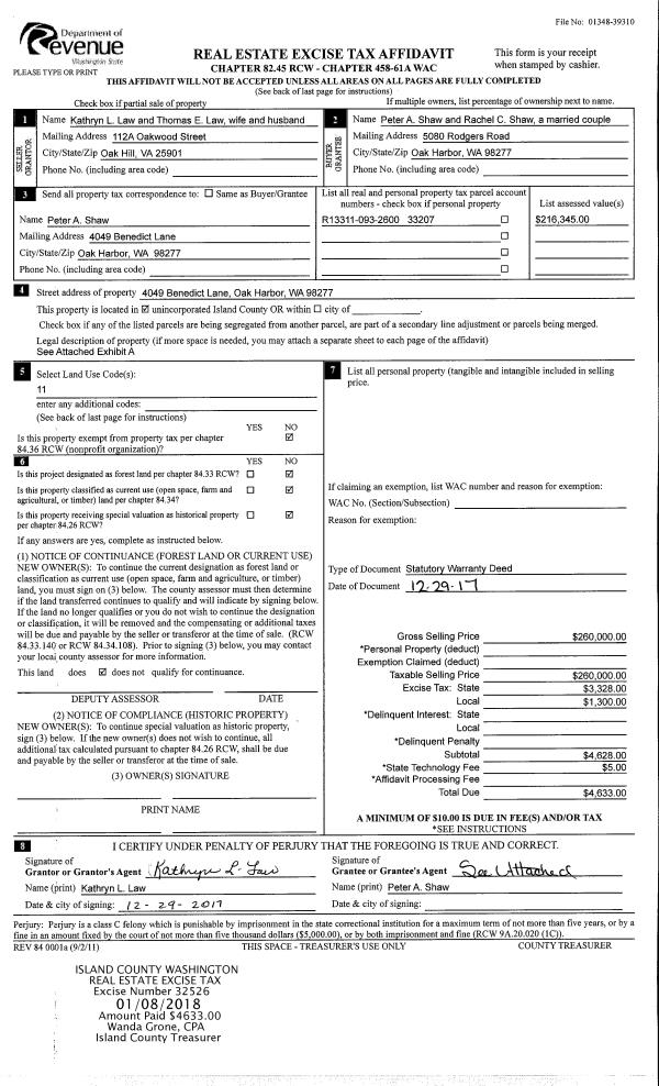 | 3 | 12/29/2017 | WD | Warranty Deed | LAW, KATHRYN L | SHAW, PETER A | | | $260,000.00 | 32526 | 4437005 |