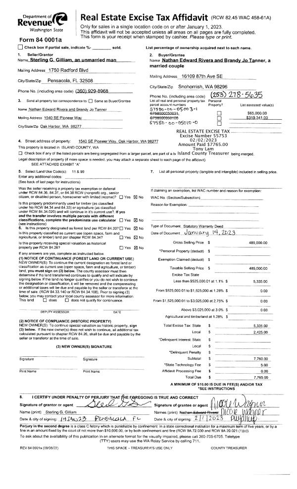 | 1 | 01/14/2023 | WD | Warranty Deed | GILLIAM, STERLING G | RIVERA, NATHAN EDWARD | | | $485,000.00 | 55753 | 4556316 |