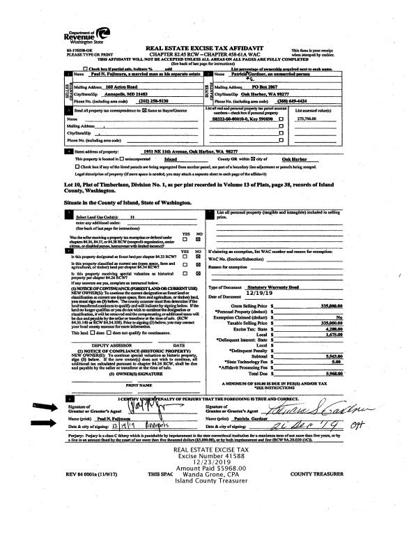 | Mailing Address: | BRANDY JO TANNER 1540 SE PIONEER WAY OAK HARBOR, WA 98277 | % Ownership: | 100.0000000000% |