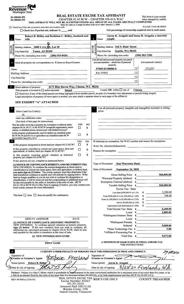 | 1 | 09/24/2020 | WD | Warranty Deed | RIDLEY, ROBERT B | ARAGAKI, AARON K | | | $560,000.00 | 45007 | 4498154 |