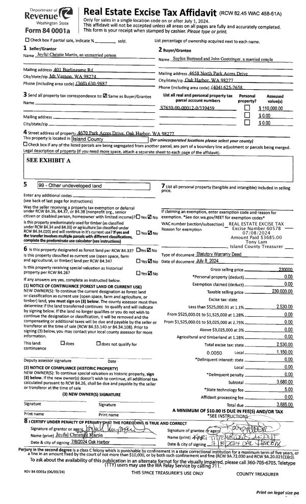 | 1 | 07/08/2024 | WD | Warranty Deed | MARTIN, JOYFUL CHRISTIE | BERTRAND, SOPHIE | | | $230,000.00 | 60578 | 4574350 |