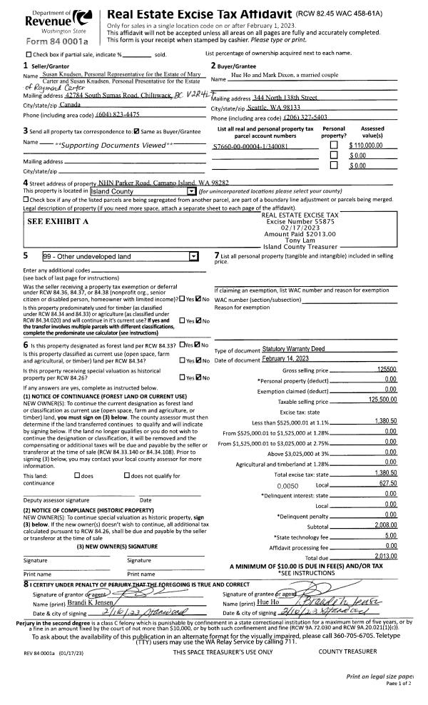 | 1 | 02/14/2023 | WD | Warranty Deed | CARTER, RAYMOND | HO, HUE | | | $125,500.00 | 55875 | 4556514 |