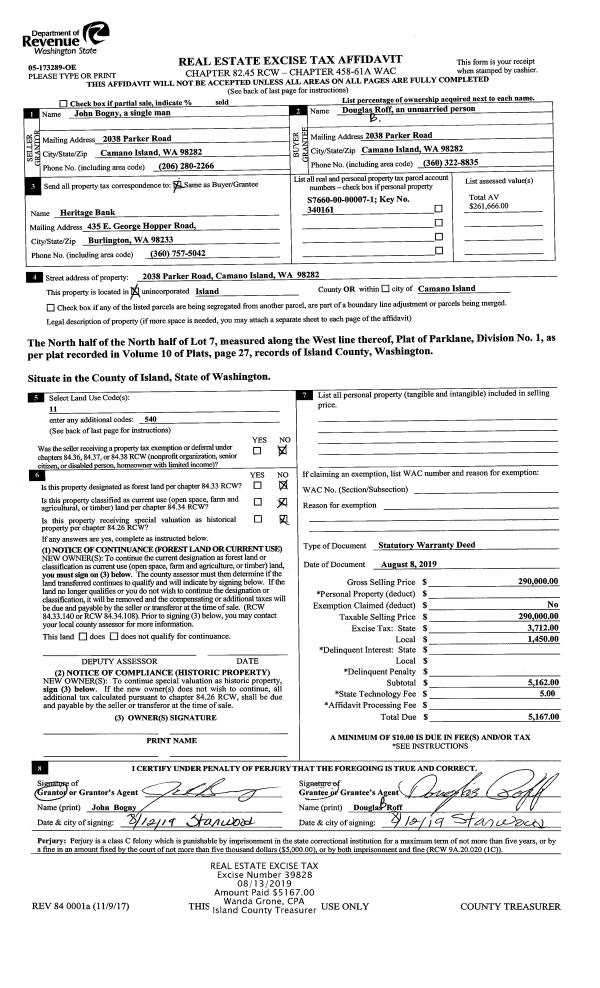| Mailing Address: | 2038 PARKER RD CAMANO ISLAND, WA 98282 | % Ownership: | 100.0000000000% |