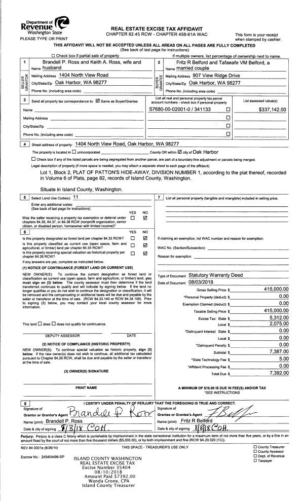 | Mailing Address: | TAFAEAFE VM BELFORD 1404 NORTH VIEW RD OAK HARBOR, WA 98277 | % Ownership: | 100.0000000000% |