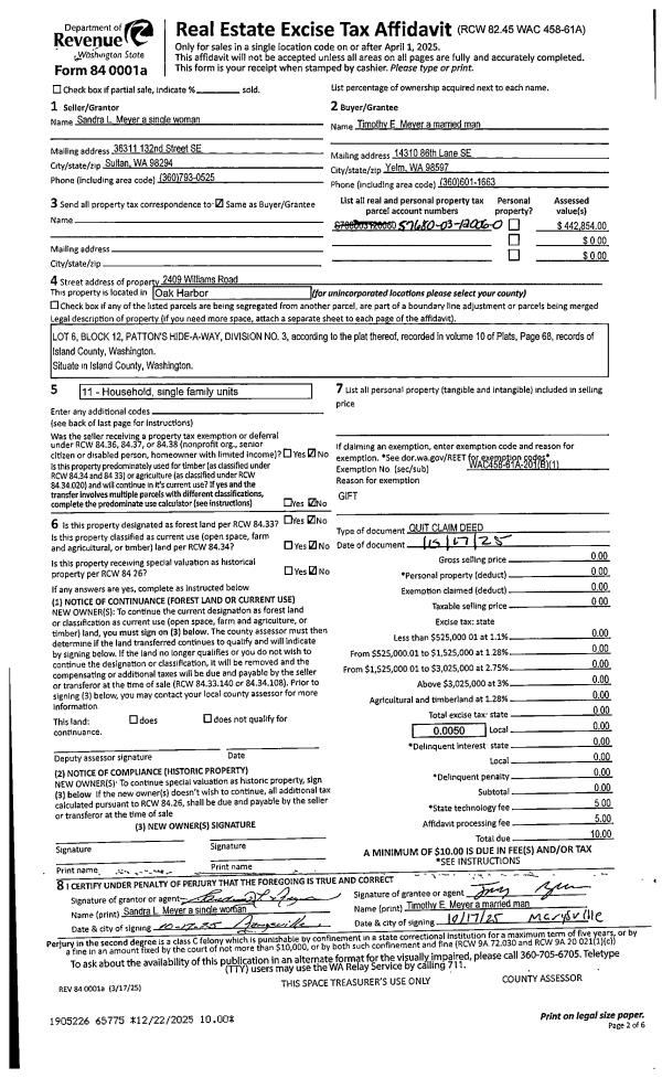 | 1 | 10/17/2025 | QCD | Quit Claim Deed | MEYER, SANDRA L | MEYER, TIMOTHY E | | | $0.00 | 65775 | 4594942 |