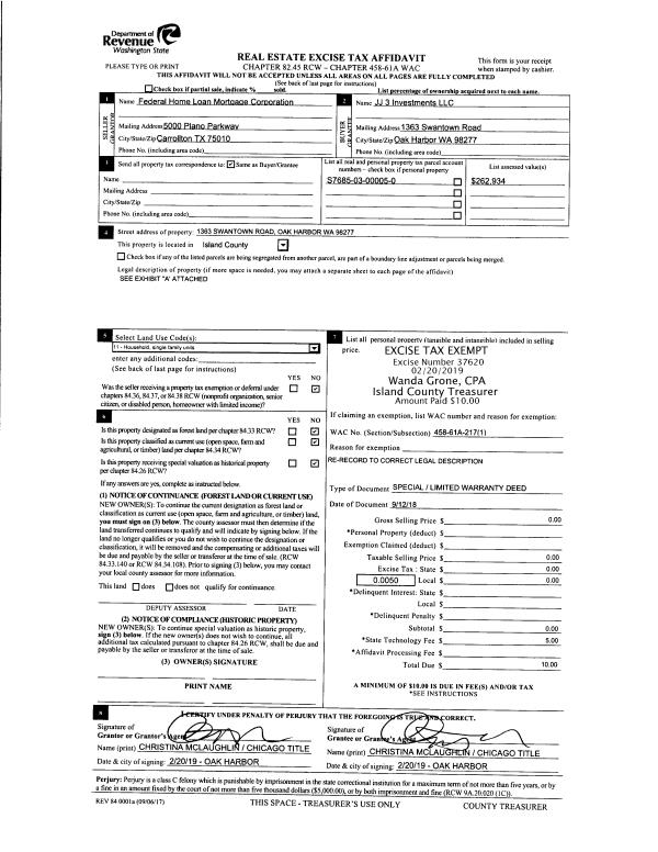 | 4 | 09/12/2018 | WD | Warranty Deed | FEDERAL HOME LOAN MORTGAGE CORPORATION | JJ 3 INVESTMENTS LLC | | | $0.00 | 35988 | 4452096 |