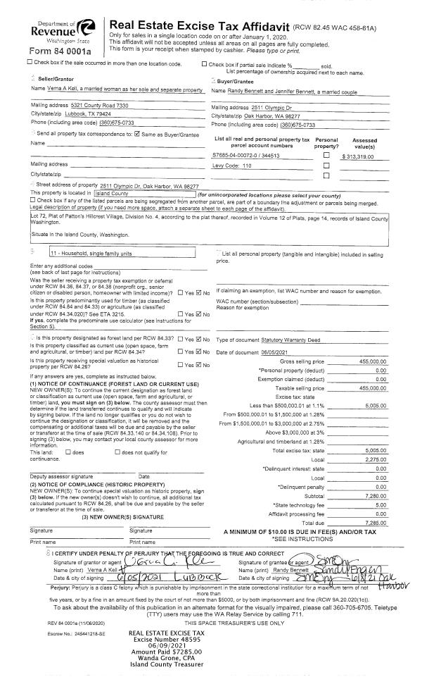 | 1 | 06/05/2021 | WD | Warranty Deed | KELL, VERNA A | BENNETT, RANDY | | | $455,000.00 | 48595 | 4521363 |