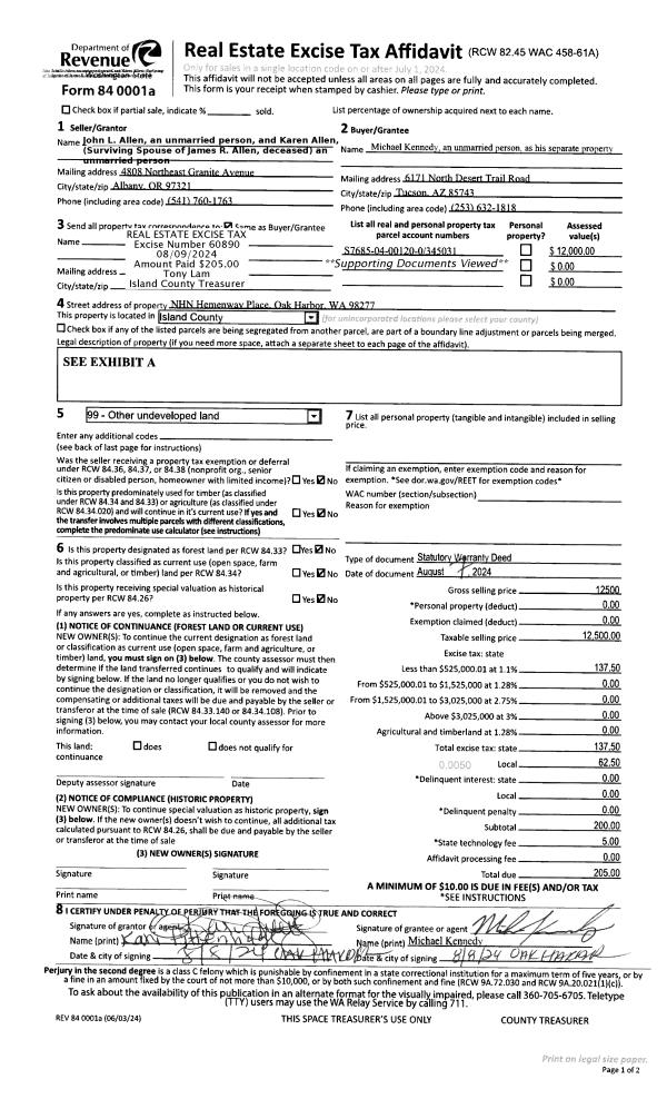 | 1 | 08/07/2024 | WD | Warranty Deed | ALLEN, JOHN L | KENNEDY, MICHAEL | | | $12,500.00 | 60890 | 4575644 |
