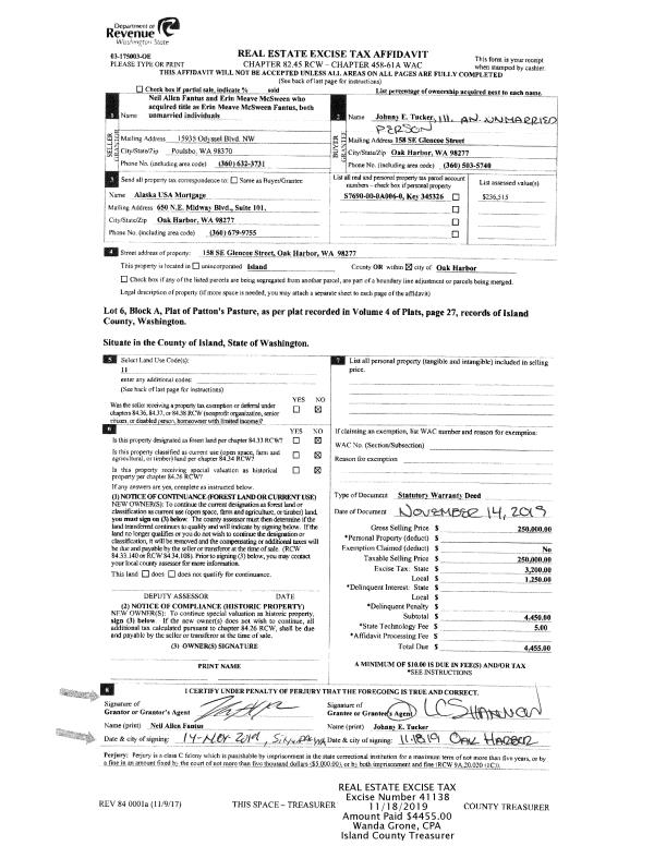 | 1 | 11/14/2019 | WD | Warranty Deed | FANTUS, NEIL ALLEN | TUCKER III, JOHNNY E | | | $250,000.00 | 41138 | 4475750 |