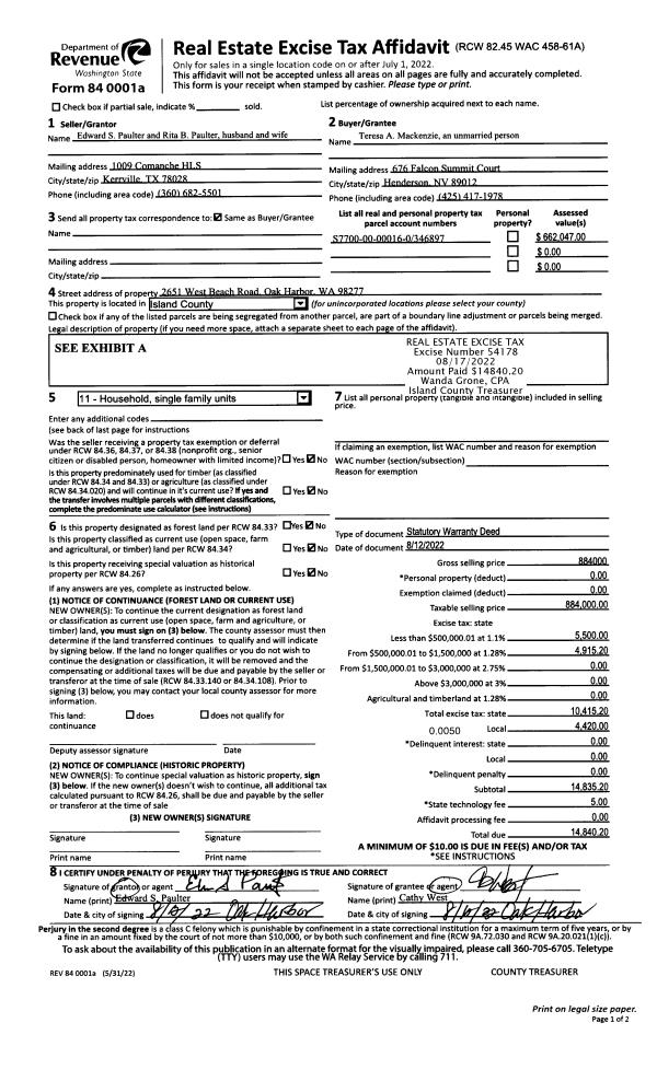 | 1 | 08/12/2022 | WD | Warranty Deed | PAULTER, EDWARD S | MACKENZIE, TERESA A | | | $884,000.00 | 54178 | 4549781 |