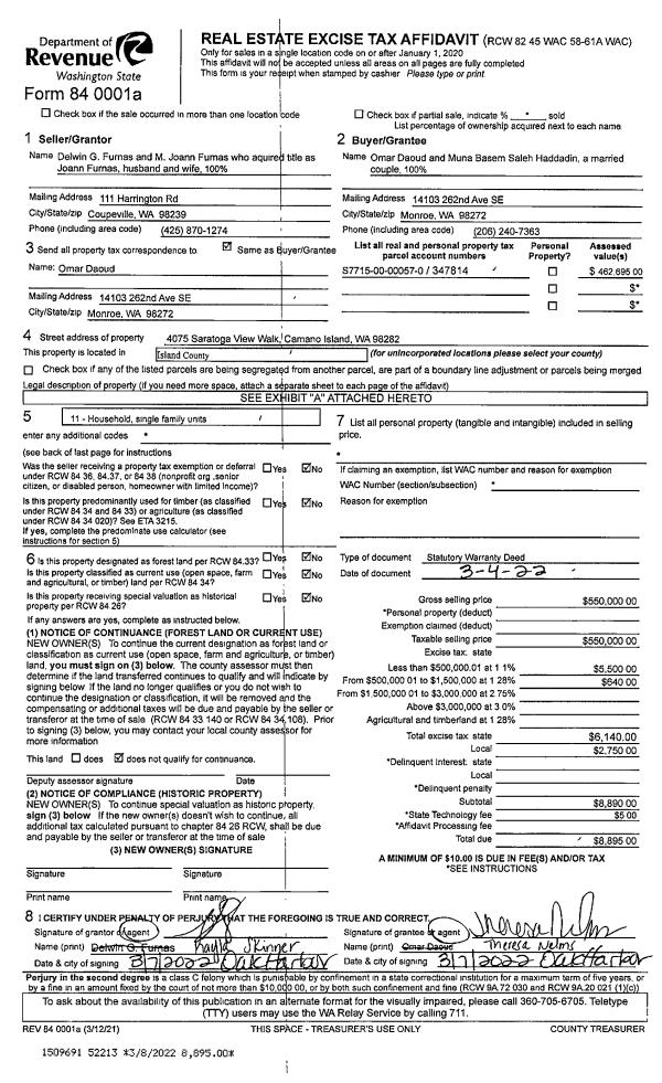 | 1 | 03/04/2022 | WD | Warranty Deed | FURNAS, DELWIN G | DAOUD, OMAR | | | $550,000.00 | 52213 | 4541085 |
