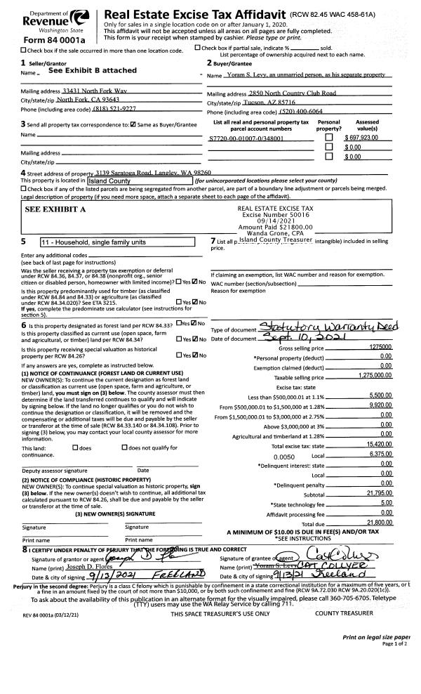 | 3 | 09/10/2021 | WD | Warranty Deed | FLORES, JOSEPH D | LEVY, YORAM S | | | $1,275,000.00 | 50016 | 4529054 |