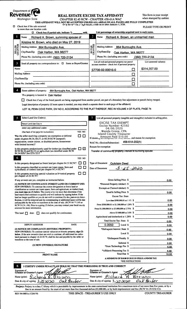 | 2 | 03/25/2020 | QCD | Quit Claim Deed | BROWN, RICHARD | BROWN, RICHARD A | | | $0.00 | 42592 | 4484304 |