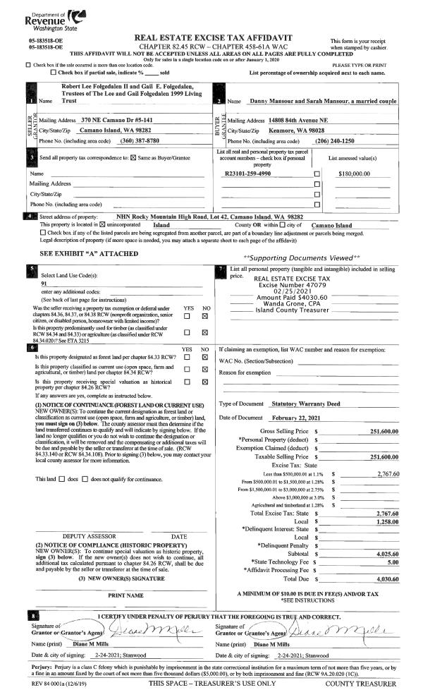 | Mailing Address: | 4814 PINEWOOD CIR LANGLEY, WA 98260 | % Ownership: | 100.0000000000% |
