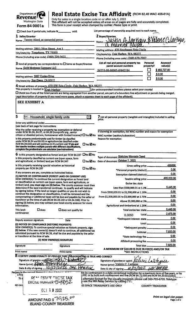 | Mailing Address: | 3033 ROBIN LN OAK HARBOR, WA 98277 | % Ownership: | 100.0000000000% |