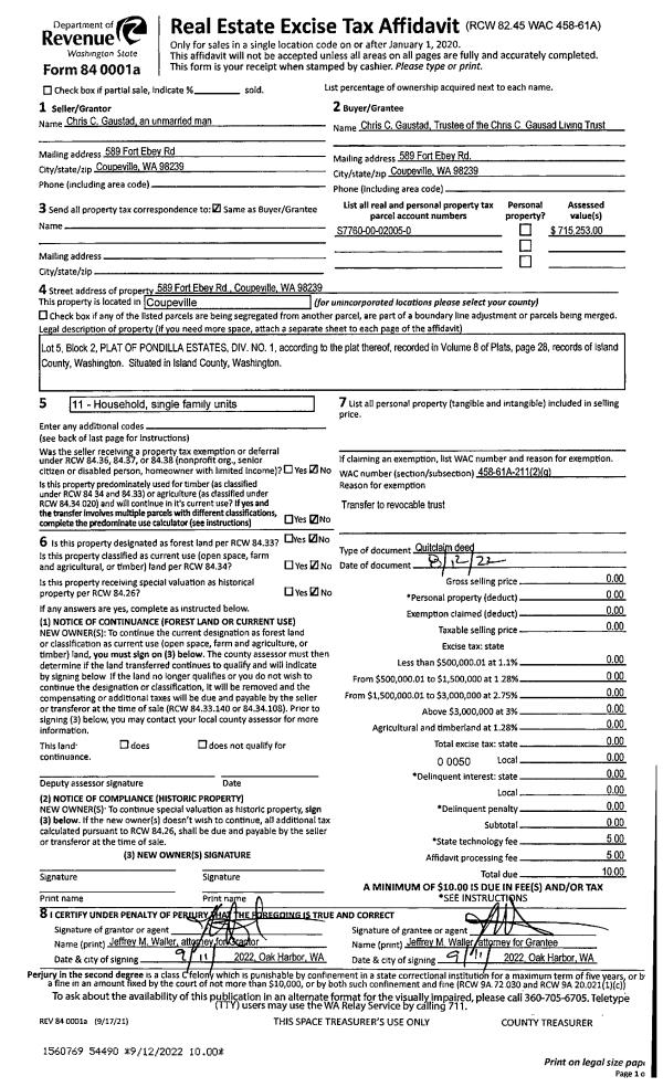 | 2 | 08/12/2012 | QCD | Quit Claim Deed | GAUSTAD, CHRIS C | GUASTAD TTEE, CHRIS C. | | | $0.00 | 54490 | 4551048 |