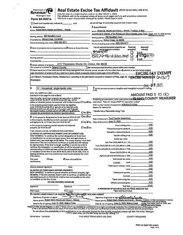 | 1 | 06/12/2025 | TRUSTEED | Trustee's Deed | WEEDE, ROBERT MARIO | WEEDE TTEE, ROBERT M | | | $0.00 | 64309 | 4588921 |