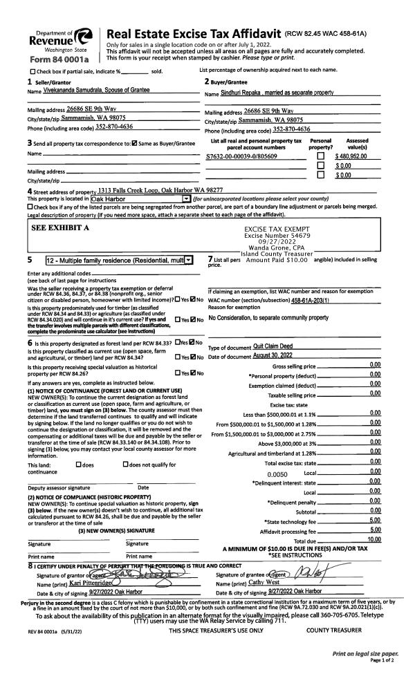 | Mailing Address: | REBECCA MARIE BOURDEAU 829 GRANITE LN CAMANO ISLAND, WA 98282 | % Ownership: | 100.0000000000% |