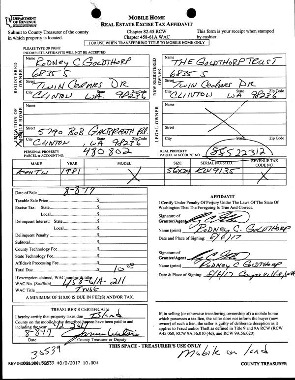 | 4 | 06/03/2004 | QCD | Quit Claim Deed | BLUE SKY PROPERTIES & STORAGE | WHIDBEY INVESTMENTS LLC, | | | $553,955.00 | 42366 | 4102453 |