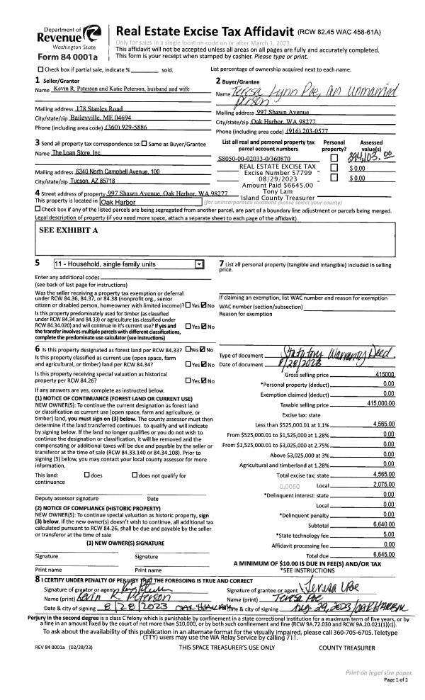 | Mailing Address: | 997 SHAWN AVE OAK HARBOR, WA 98277 | % Ownership: | 100.0000000000% |