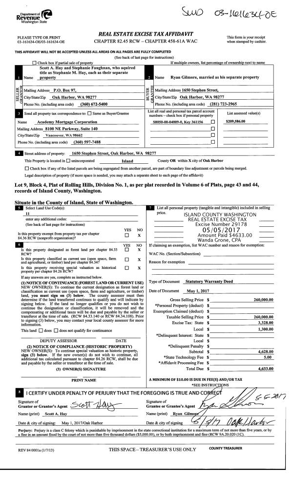 | 3 | 05/01/2017 | WD | Warranty Deed | HAY, SCOTT A | GILMORE, RYAN | | | $260,000.00 | 29178 | 4422002 |