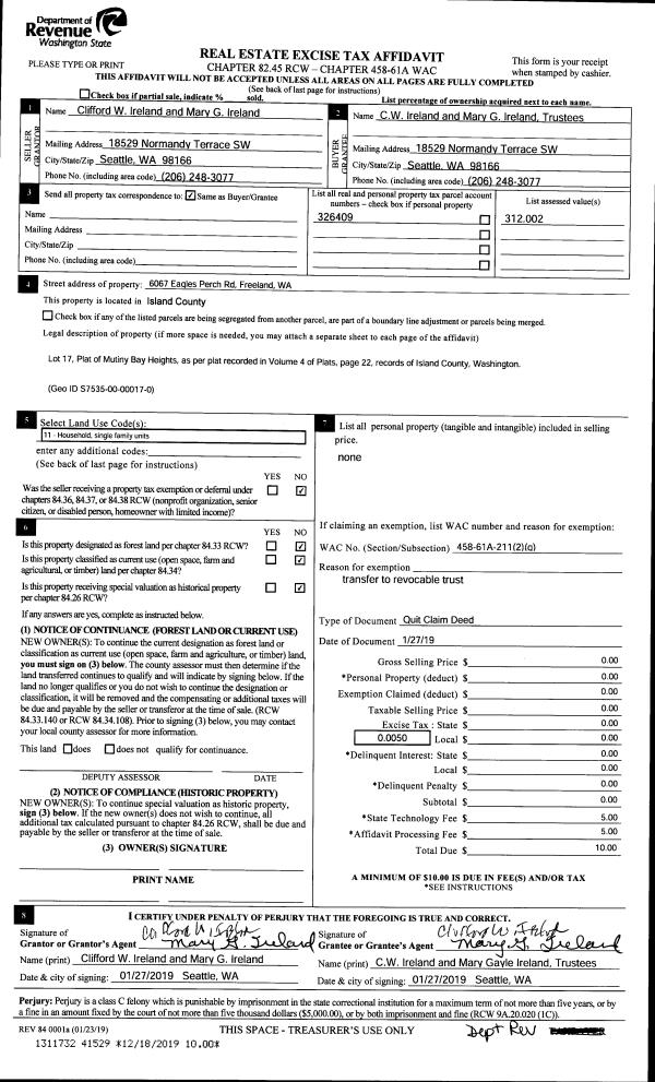 | Mailing Address: | PO BOX 1422 OAK HARBOR, WA 98277-1422 | % Ownership: | 100.0000000000% |