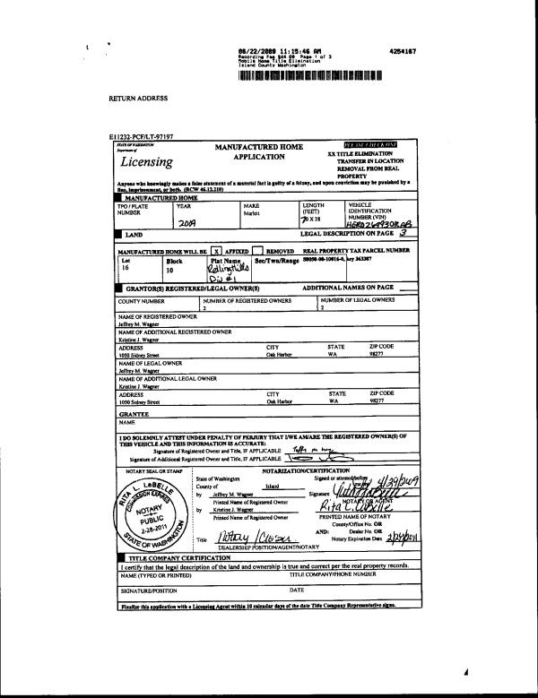 | 6 | 04/28/2009 | WD | Warranty Deed | WESTGATE MOBILE HOMES INC, | WAGNER, JEFFREY M | | | $218,000.00 | 90957 | 4250267 |