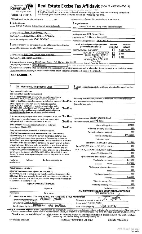 | 1 | 03/14/2024 | WD | Warranty Deed | AYALA, PATRICK | WATTS, ANTONIO | | | $465,000.00 | 59443 | 4570426 |