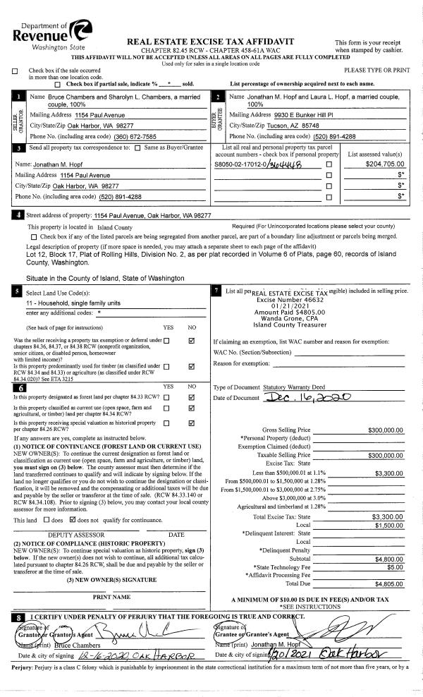 | 2 | 12/16/2020 | WD | Warranty Deed | CHAMBERS, BRUCE | HOPF, JONATHAN M | | | $300,000.00 | 46632 | 4508659 |