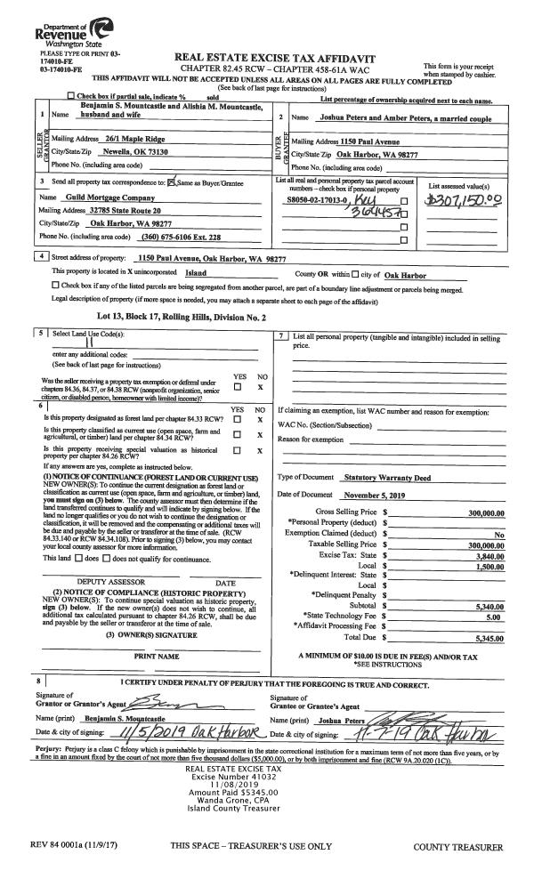 | Mailing Address: | 1150 PAUL AVE OAK HARBOR, WA 98277 | % Ownership: | 100.0000000000% |