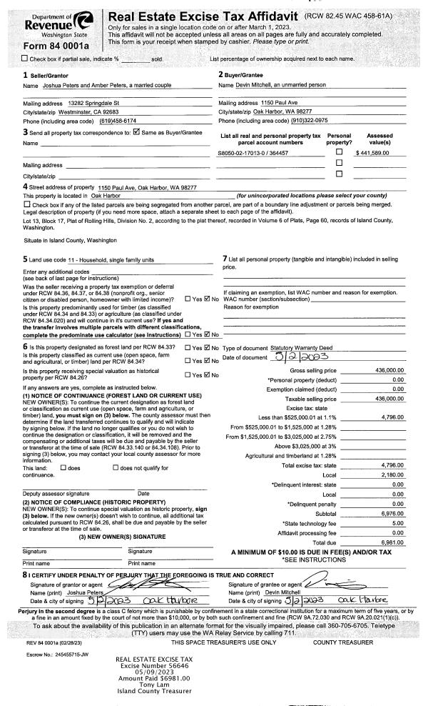 | 1 | 05/02/2023 | WD | Warranty Deed | PETERS, JOSHUA | MITCHELL, DEVIN | | | $436,000.00 | 56646 | 4559684 |