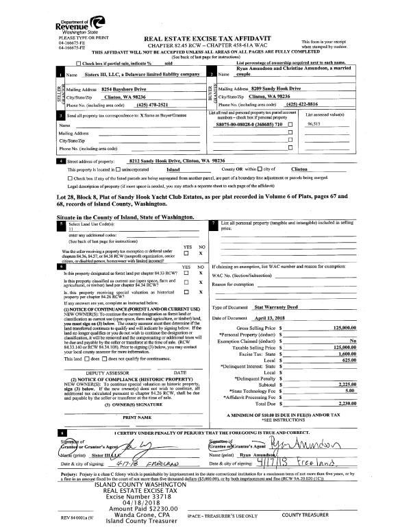 | 1 | 04/13/2018 | WD | Warranty Deed | SISTERS III LLC | AMUNDSON, RYAN | | | $125,000.00 | 33718 | 4442794 |