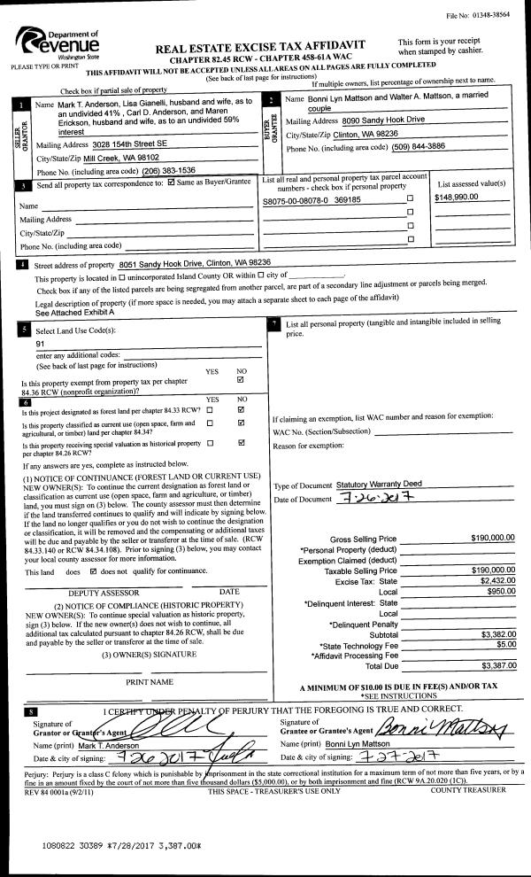 | 1 | 07/26/2017 | WD | Warranty Deed | ANDERSON, CARL D | MATTSON, WALTER A | | | $190,000.00 | 30389 | 4427114 |
