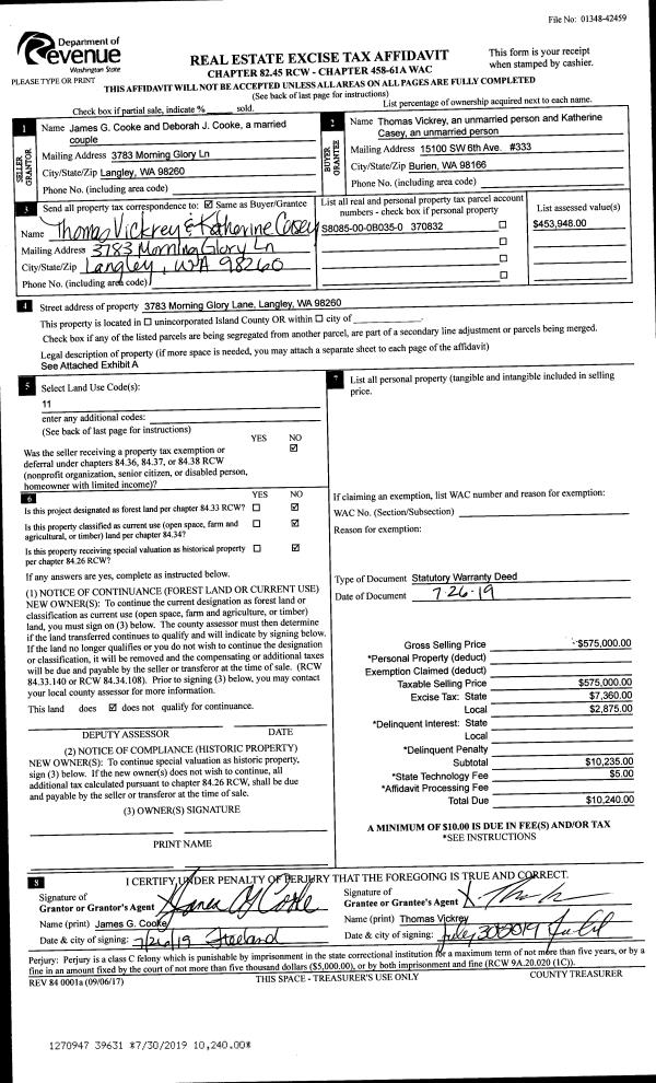 | 2 | 07/26/2019 | WD | Warranty Deed | COOKE, JAMES G | VICKREY, THOMAS L | | | $575,000.00 | 39631 | 4468300 |