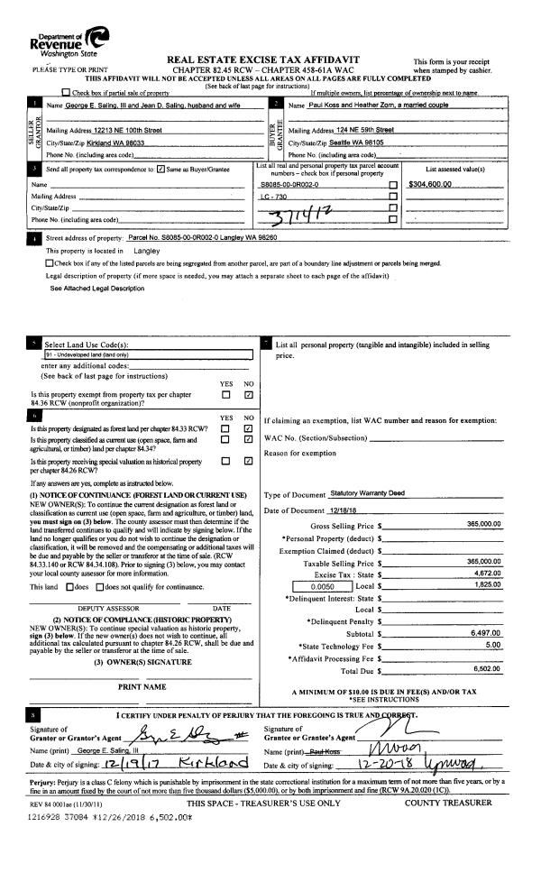 | 1 | 12/18/2018 | WD | Warranty Deed | SALING III, GEORGE E | KOSS, PAUL | | | $365,000.00 | 37084 | 4457037 |