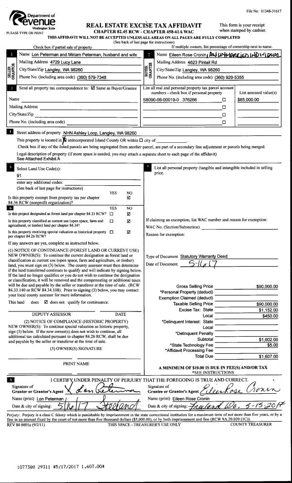 | 2 | 05/16/2017 | WD | Warranty Deed | PETERMAN, LON | CRONIN, EILEEN ROSE | | | $90,000.00 | 29311 | 4422616 |