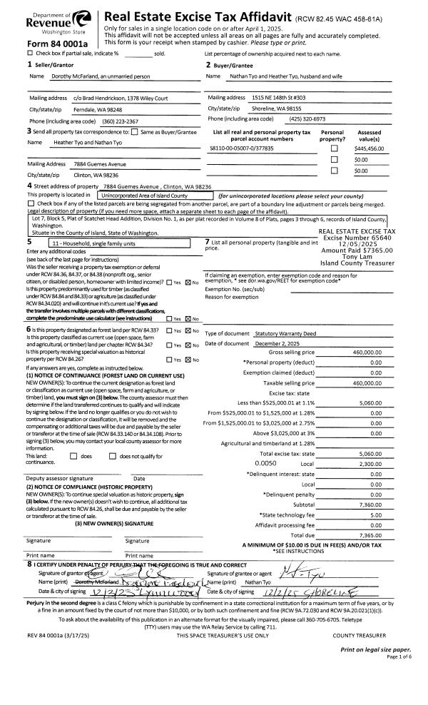 | 1 | 12/02/2025 | WD | Warranty Deed | MCFARLAND, DOROTHY | TYO, NATHAN | | | $460,000.00 | 65640 | 4594285 |