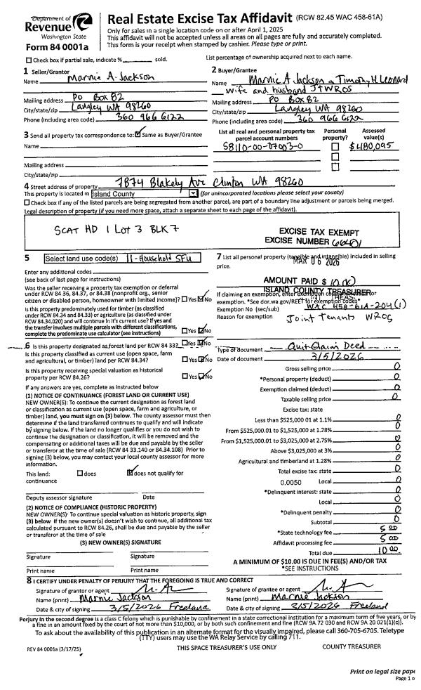 | Owner: | JACKSON, MARNIE ALICE | | |