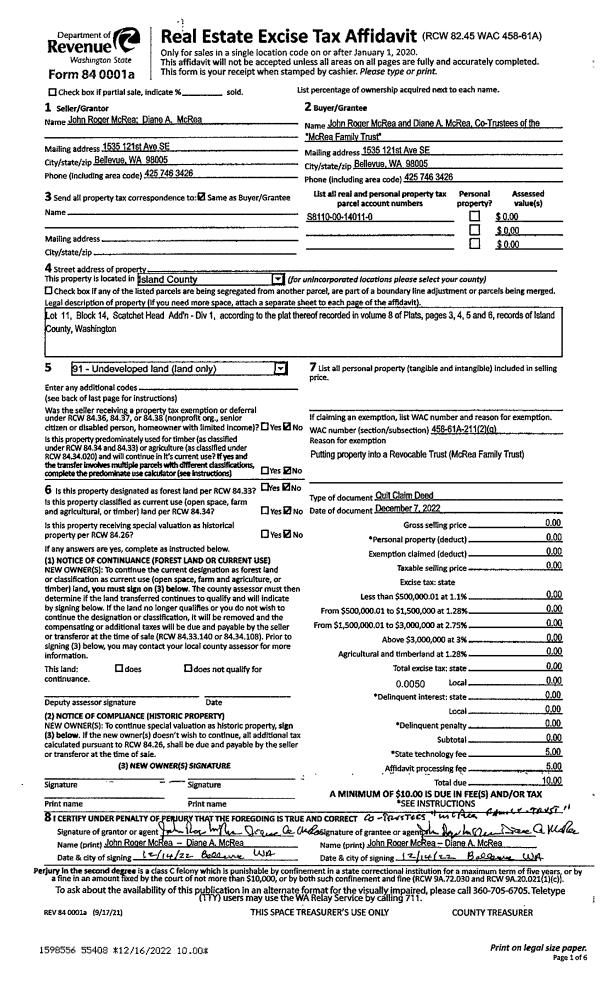 | 1 | 12/07/2022 | QCD | Quit Claim Deed | MCREA, ROGER AND DIANE | MCREA TTEE, JOHN R | | | $0.00 | 55408 | 4554907 |