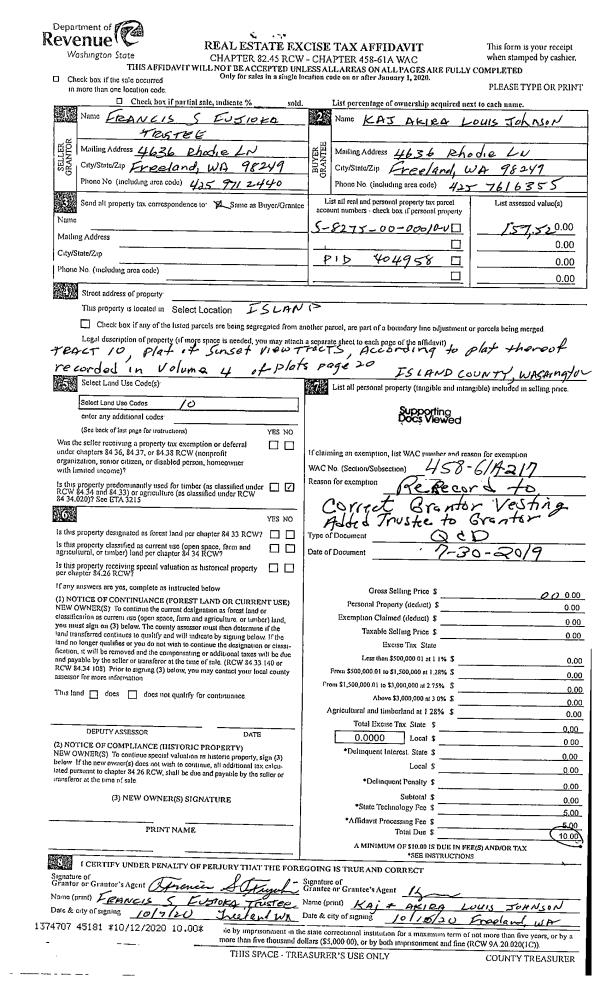 | Mailing Address: | MAILENIE LEILANI VADERS 5919 W FLOWING LAKE RD SNOHOMISH, WA 98290 | % Ownership: | 100.0000000000% |