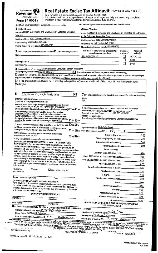 | 1 | 11/18/2025 | QCD | Quit Claim Deed | COLLANTES, KATHLEEN S | THE COLLANTES REVOCABLE TRUST | | | $0.00 | 65657 | 4594388 |