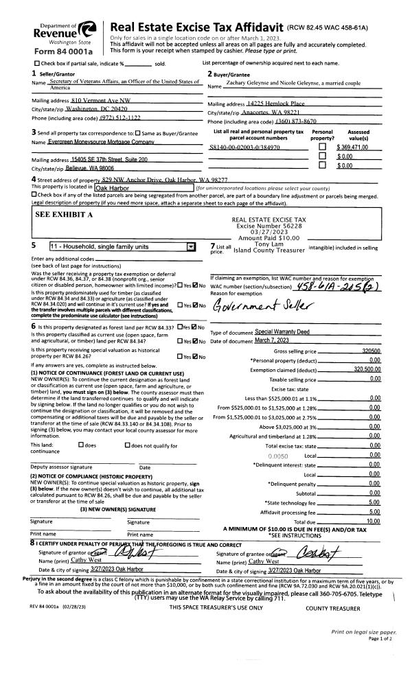 | 1 | 03/07/2023 | WD | Warranty Deed | SECRETARY OF VETERANS AFFAIRS | GELEYNSE, ZACHARY | | | $0.00 | 56228 | 4558167 |