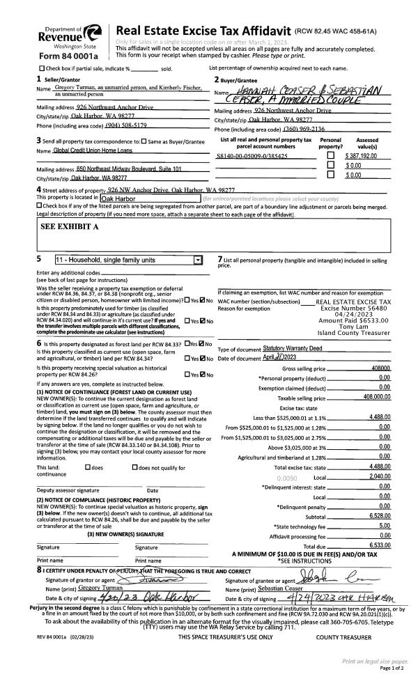 | Mailing Address: | SEBASTIAN CEASER 926 NW ANCHOR DR OAK HARBOR, WA 98277 | % Ownership: | 100.0000000000% |