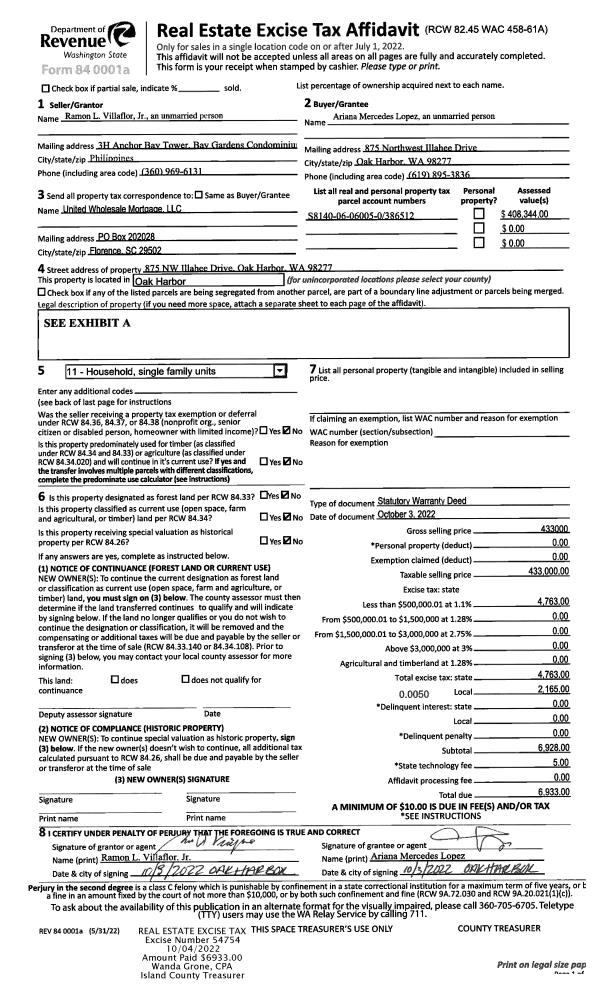 | 1 | 10/03/2022 | WD | Warranty Deed | VILLAFLOR JR, RAMON L | LOPEZ, ARIANA | | | $433,000.00 | 54754 | 4552094 |