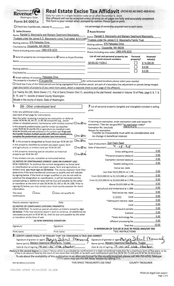 | 1 | 04/15/2025 | QCD | Quit Claim Deed | MACONACHY TTEE, RANDALL S | MACONACHY TTEE, RANDALL S | | | $0.00 | 63448 | 4585760 |