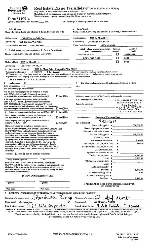 | 1 | 09/22/2022 | WD | Warranty Deed | LANG, CHARLES A / ELEANOR J | MURPHY, JOSHUA A | | | $550,000.00 | 54636 | 4551609 |