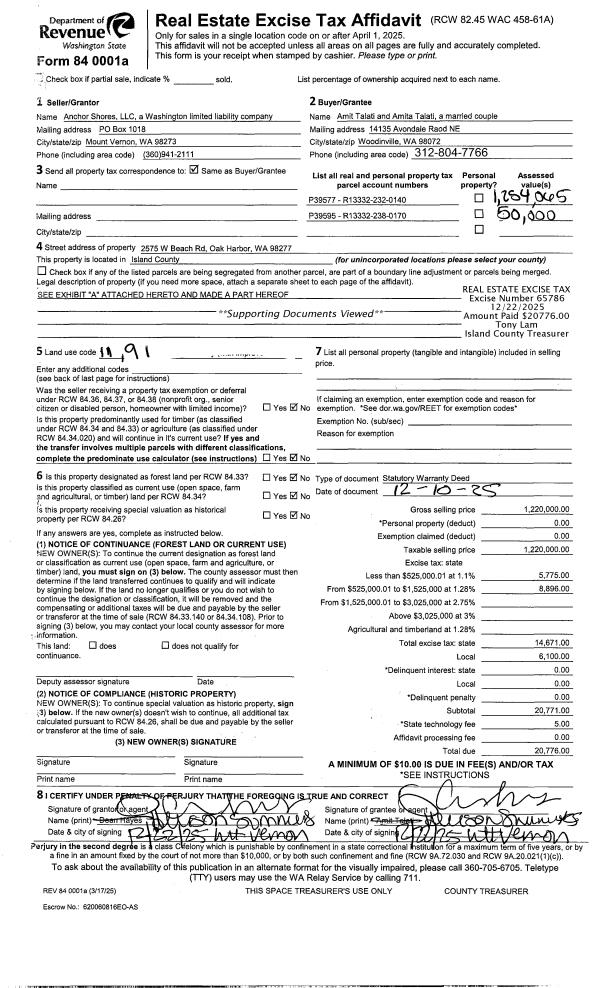 | 1 | 12/10/2025 | WD | Warranty Deed | ANCHOR SHORES LLC | TALATI, AMIT | | | $1,220,000.00 | 65786 | 4594952 |