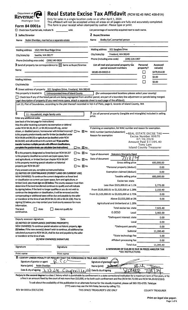 | 1 | 07/13/2024 | WD | Warranty Deed | SHERIDAN, ROBIN | EARL, SHELBY | | | $693,000.00 | 60670 | 4574706 |