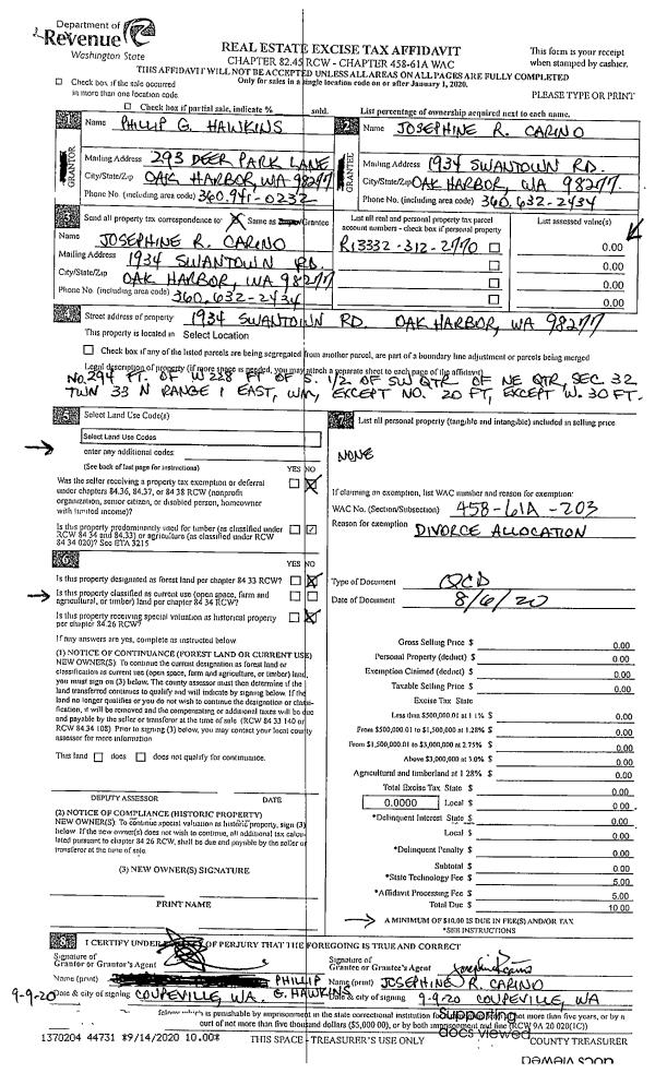 | 1 | 08/06/2020 | QCD | Quit Claim Deed | HAWKINS, PHILLIP G | CARINO, JOSEPHINE | | | $0.00 | 44731 | 4496491 |